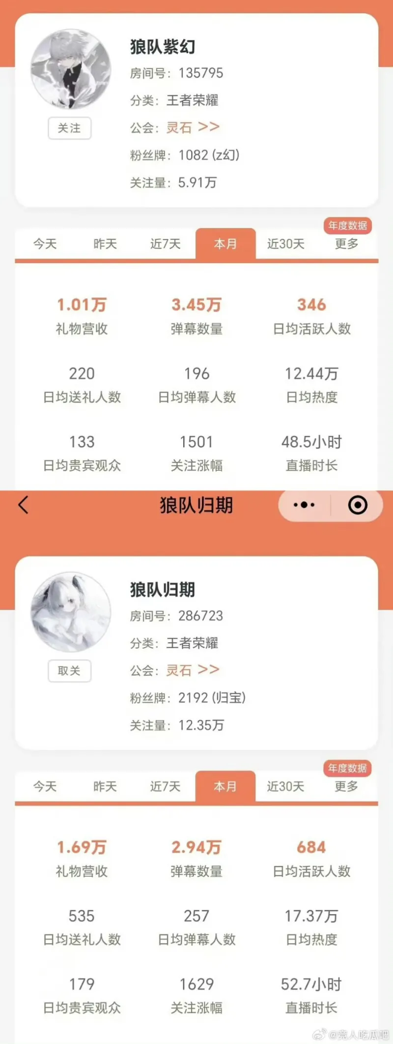狼队选手直播流水:风箫最高,小胖最低