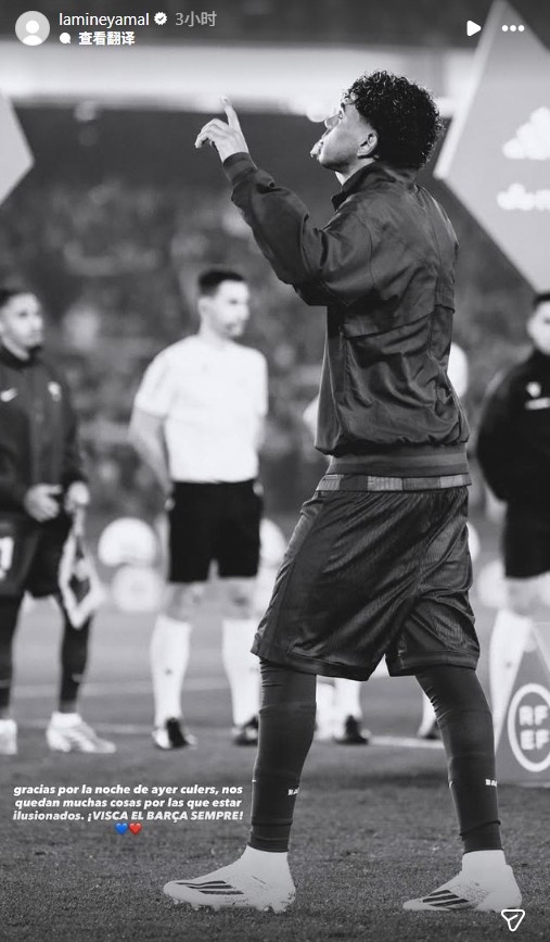 3月5日讯 国王杯半决赛,巴萨总比分3比4不敌马竞,遗憾出局。赛后,亚马尔更新社媒感谢球迷,并鼓励球队。